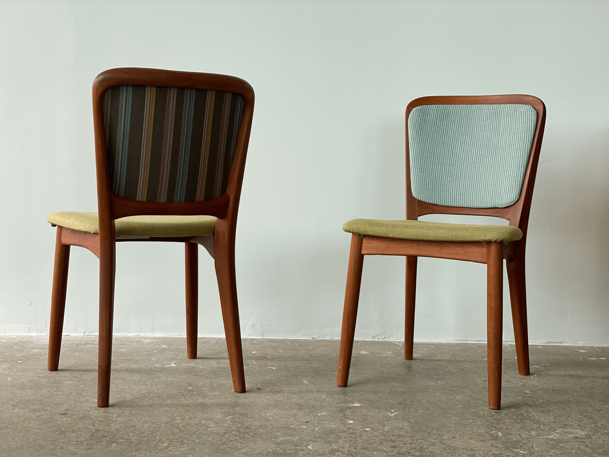 Shop › Niels Koefoed Danish Modern Dining Chairs Image 1 of 15 Image 2 of 15 Image 3 of 15 Image 4 of 15 Image 5 of 15 Image 6 of 15 Image 7 of 15 Image 8 of 15 Image 9 of 15 Image 10 of 15 Image 11 of 15 Image 12 of 15 Image 13 of 15 Image 14 of 15 Image 15 of 15 Niels Koefoed Danish Modern Dining Chairs $375.00 SOLD Two Danish wooden chairs with 3 different upholstery patterns. SOLD Added! Two Danish wooden chairs with 3 different upholstery patterns.